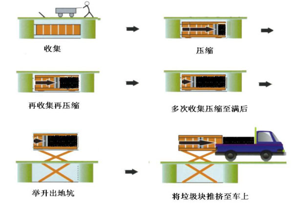 垃圾儲(chǔ)存、壓縮及寄存全部在地面以下,地面上沒有垃圾散落,對(duì)環(huán)境影響較??;垃圾壓縮后密度高,水份少,可避免汽車運(yùn)輸中的垃圾散落、污水滴漏現(xiàn)象,避免二次污染;