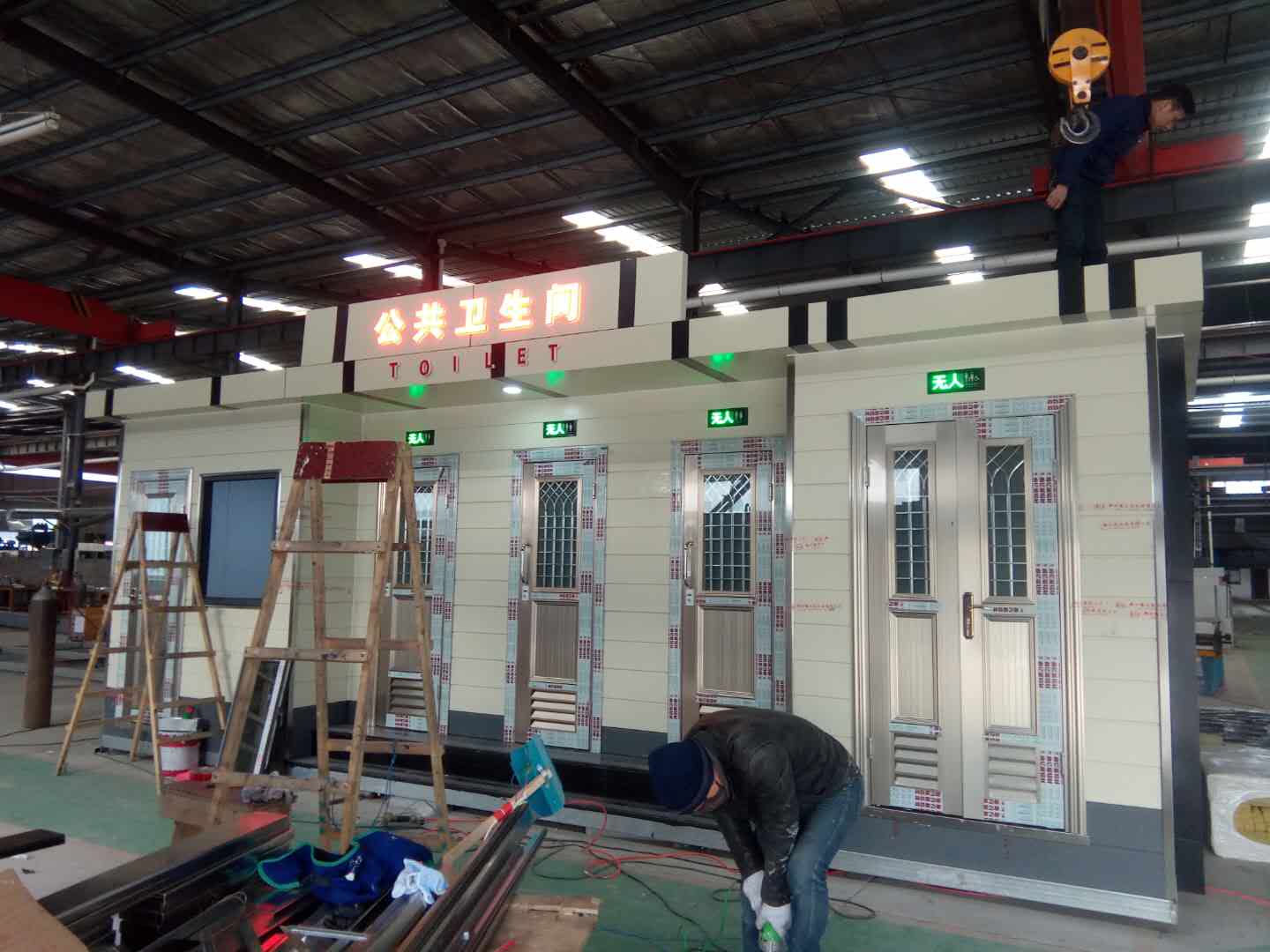 1、房體結(jié)構(gòu): 采用輕鋼龍骨結(jié)構(gòu),鋼材全部使用國(guó)家標(biāo)準(zhǔn)鍍鋅鋼材。根據(jù)房體的大小特選用國(guó)標(biāo)方管(50-100)焊接而成。鍍鋅管厚度為2.8mm,方管經(jīng)過除銹后進(jìn)行鍍鋅、防腐處理。這樣就會(huì)延長(zhǎng)廁所使用壽命。
