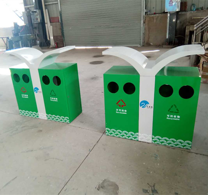 蝴蝶型分類環(huán)保垃圾桶果皮箱采用SMC復(fù)合材料,3500噸壓機(jī)模壓成型,內(nèi)外光潔度一致。